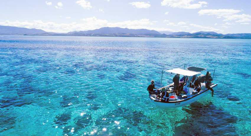 Si vous souhaitez plonger avec palmes, masque et tuba à proximité du grand récif, vous aurez la possibilité d'observer les nombreux habitants du récif comme les raies aigles et les tortues. Les dauphins peuvent se montrer plus ou moins indifférents selon les circonstances. Mais à chaque fois qu'ils répondent présents, l'émotion est garantie.
